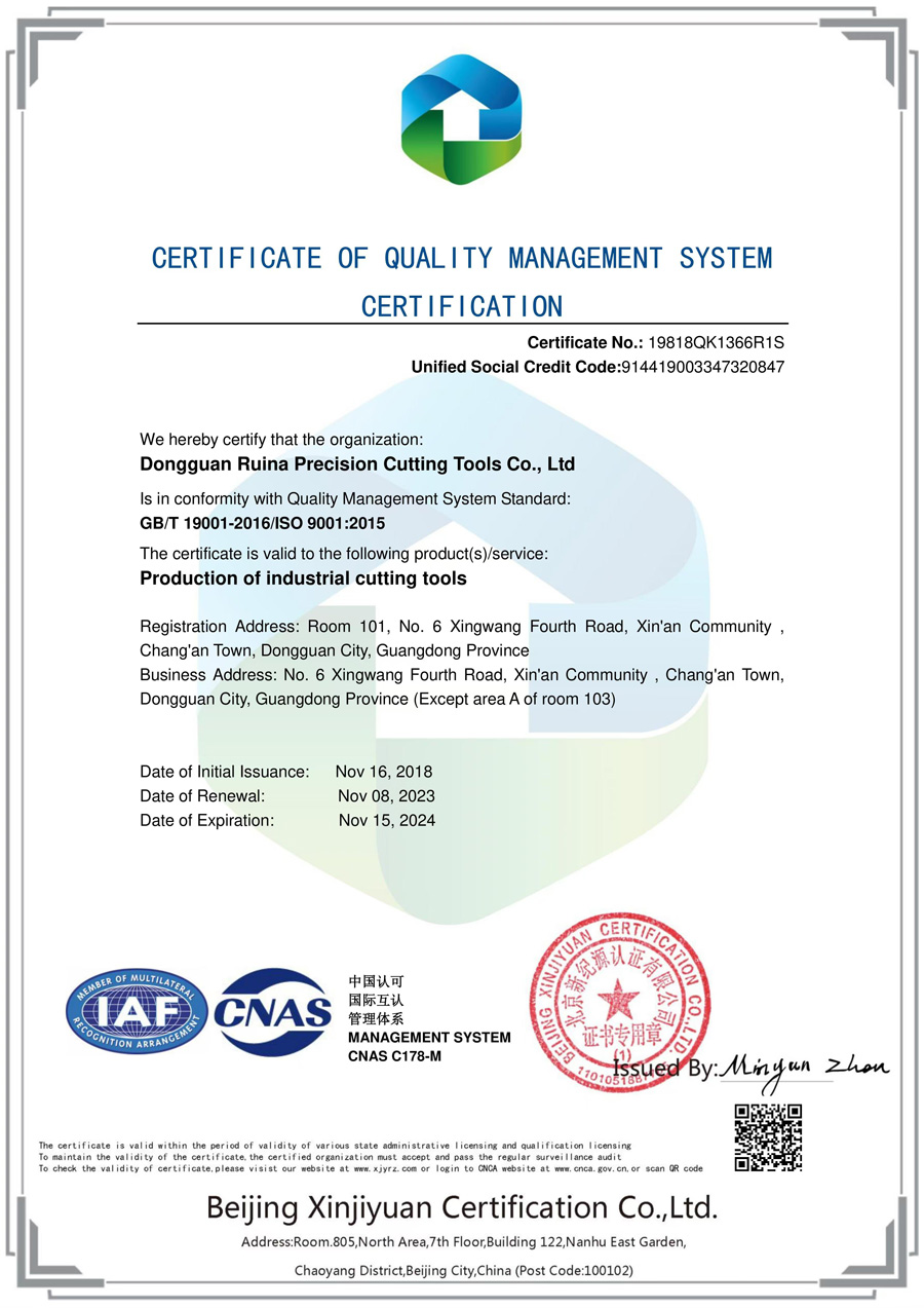 *We have passed the quality management system certification (GB/T 19001-2016/ISO 9001:2015)